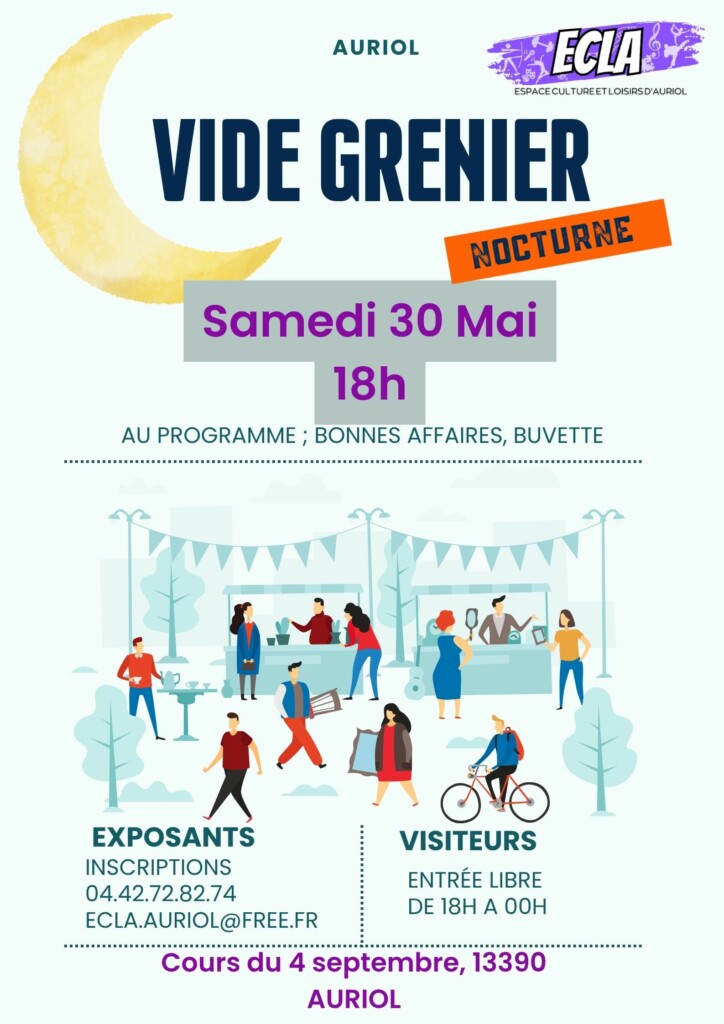 L’ECLA organise un vide grenier nocturne le Samedi 30 Mai 2026.